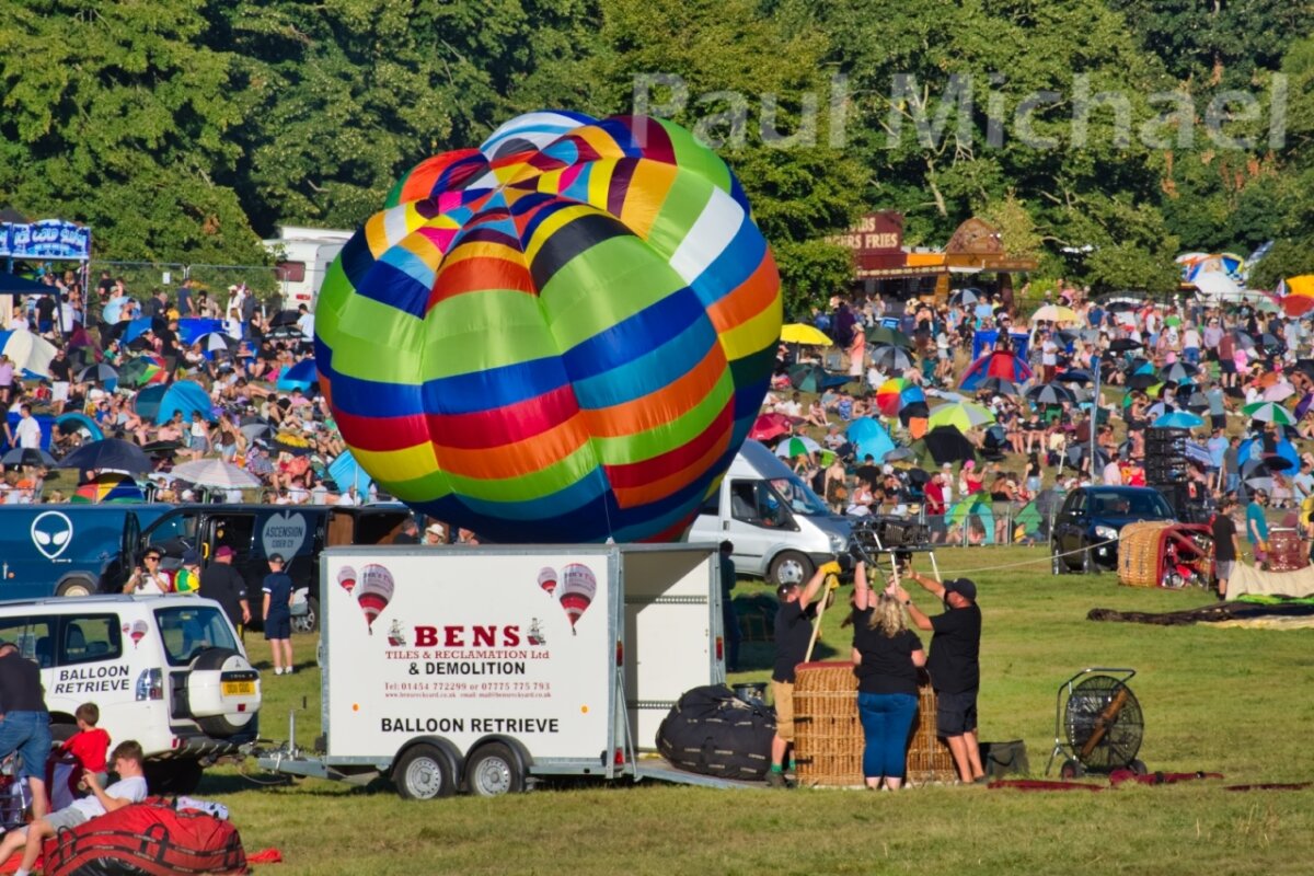 Eventually, after a couple of short walks from tree to tree, we found a nice spot overlooking the Bristol Balloon Fiesta main arena and in the shade of a copse behind us. Out with the camera and a long lens fitted, I zoomed in on some of the action unfolding in front of us.