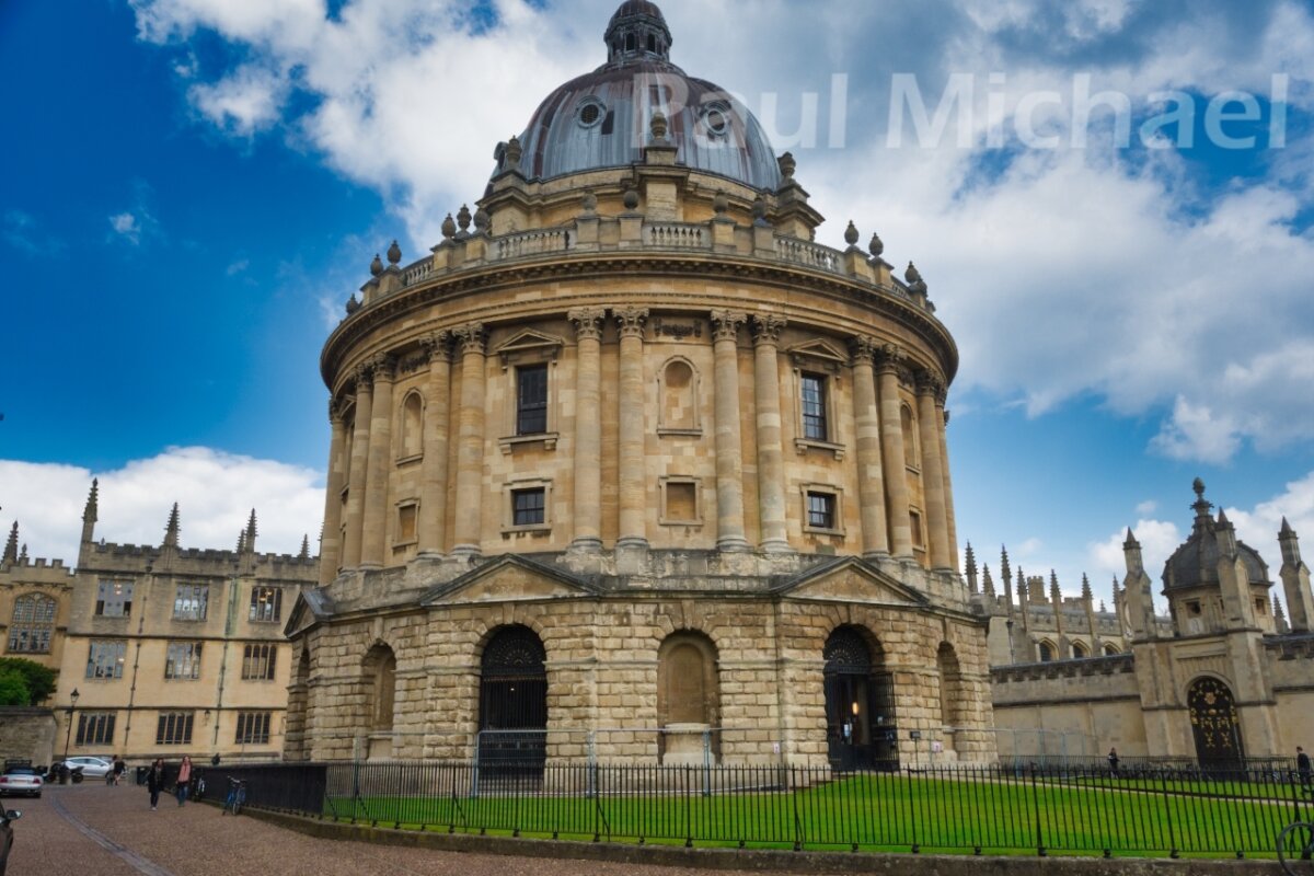 Tracking back and further down Cornmarket Street is a junction. We headed east along High Street with its amazing buildings on either side of the road to the Church of St Mary the Virgin. There is a walkway on either side of the church that opens up to Radcliffe Square. The magnificent buildings we had stumbled upon were all part of the University. There are many impressive premises, one of which is the Radcliffe Camera. It’s a round structure with a domed roof, constructed circa 1740 as a science library.