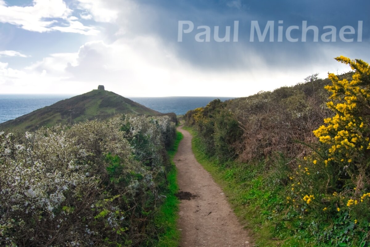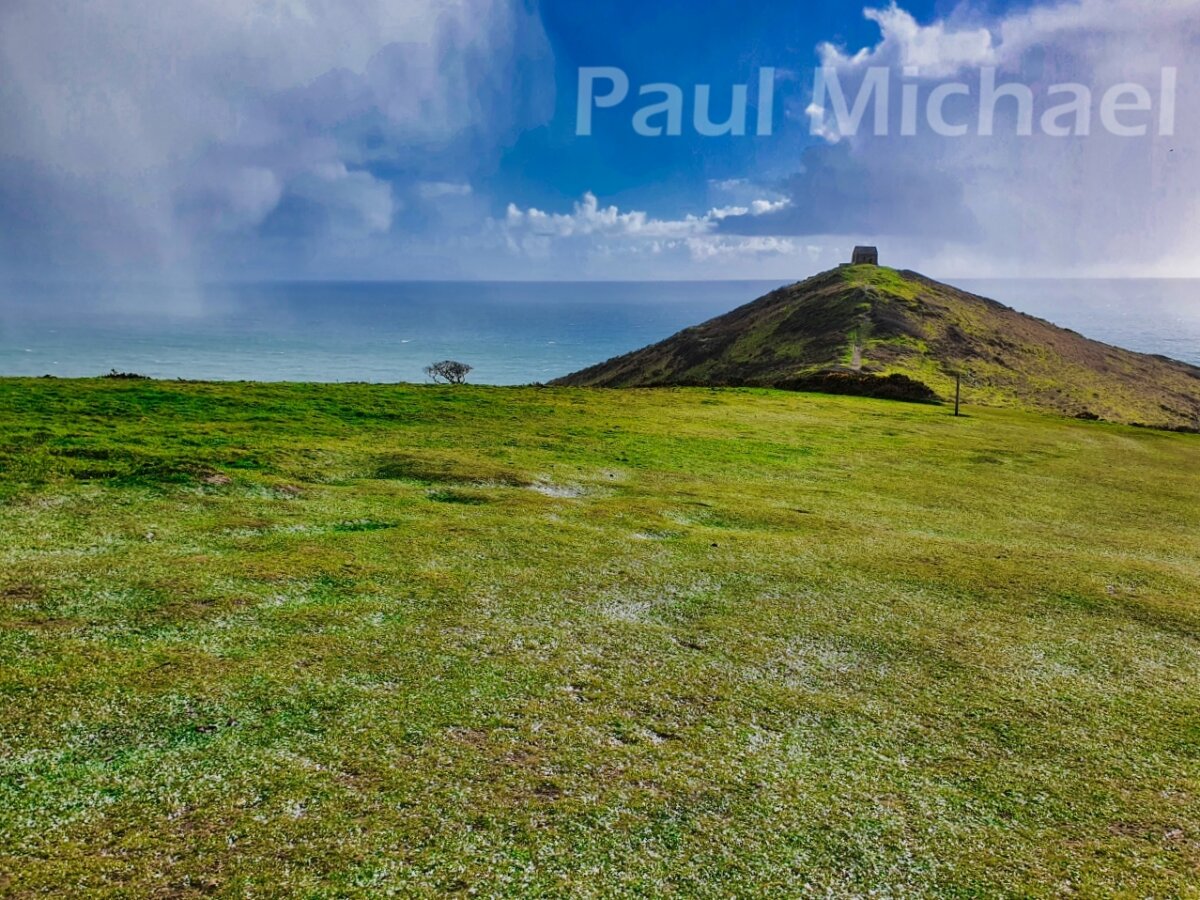 As I arrived at Rame, looking further west along the coast, I could see a massive hail storm coming my way. The temperatures dropped and it was all I could do to get my camera packed into my backpack and a waterproof cover on before the storm literally lashed out. I just had to hunker down with my back to it, but I could feel it lashing into my back.