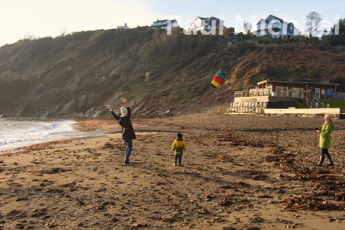 It was good to see that the beach at Millendreath had been raked to clear the seaweed that usually accumulates there. It can sometimes get a bit over-run if it is left for too long, and there isn’t much beach to enjoy. Although the tide was a fair way in, there was still quite a bit of beach to walk along and play on. The sun had stayed out, quite low in the sky, and it was quite warm for a late November day.