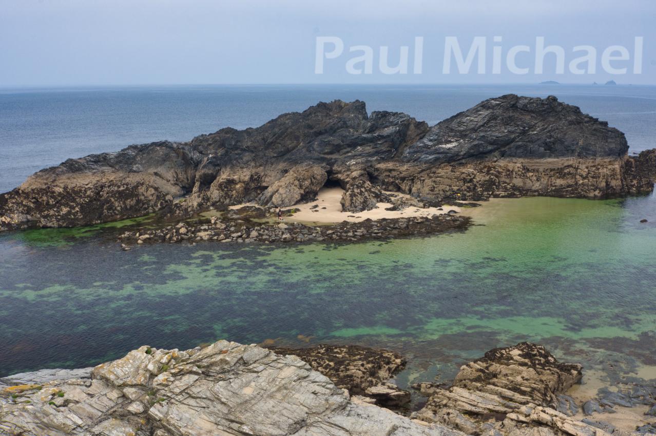 Just over the Park Head land mass, the path heads NNE and then zig-zags to Porth Mear. On my visit, there were some divers making their way out over the seaweed-covered rocks to the water beyond. I walked on a bit further and realised the attraction of diving in the area. It’s very surreal with the turquoise waters and white sands at the base of the rock masses in the water. These are known as Trescore Islands. The path rises up to get better views before rounding Porthcothan Bay.