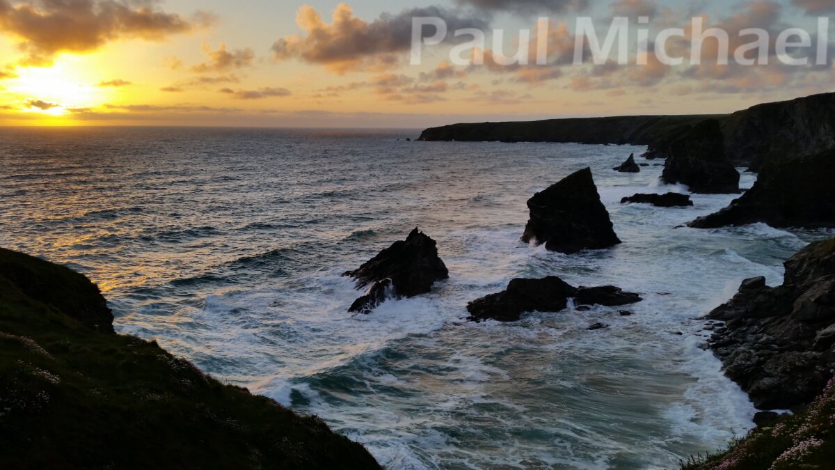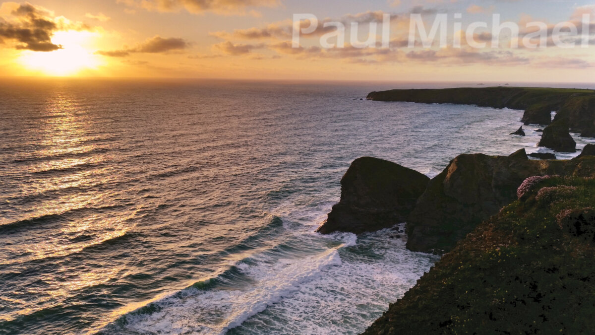 I’ve visited this area three times and found that mid-May is particularly good, due to the little pink and yellow spring flowers that adorn the clifftops. You see these in my photos taken on my first visit, which was purely by chance when my wife and I had arrived at Newquay airport a little too early to pick up our daughter. The evening shots were taken with my phone, which just goes to show that there’s no real need for snazzy gear in this area. Just point and shoot at the splendour that unfolds along the coast path.